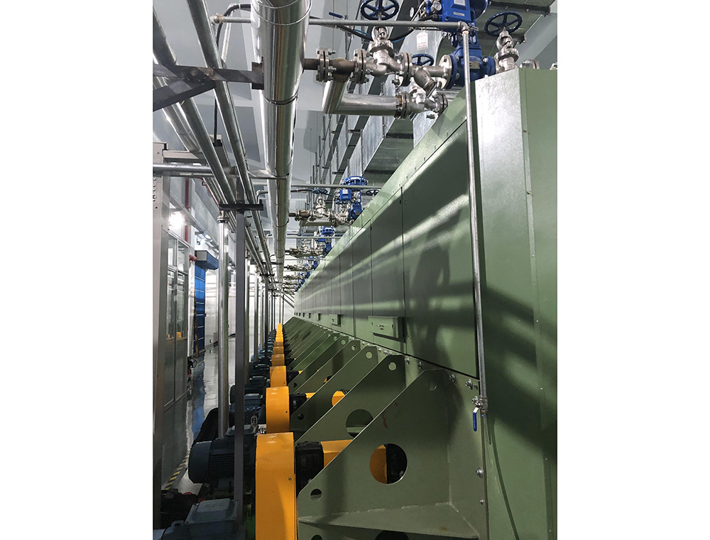 通过循环热风将丝片中的水份蒸发,并在高温状态下对纤维定型。